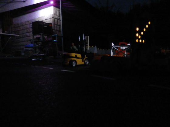 Kvůli poruchám se práce zpozdily až do tmy , technika na to byla vybavená a připravená a tak se dělalo až dlouho do noci.