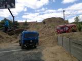 Motosraz Žatčany 26.05.12Kamiony na motosrazu asi nejsou úplně obvyklé, ale v Žatčanech u Brna se objevily i spolu se stavební technikou jako součást doprovodného programu. Sešlo se tu celkem dost zajímavých strojů, například šving, který v horku zaléval zeleň, jeřáb který nejdřív nakládal toitoiku na vozík a potom asistoval při opravě upadlého kola nakladače v terénu, kde nešel použít hever ani vyprošťovací VT-34. Kromě hlíny, obkroužené silnicemi vlnitými jak ostravská dálnice, tu bylo i malé skladiště a dakarský polygon.
